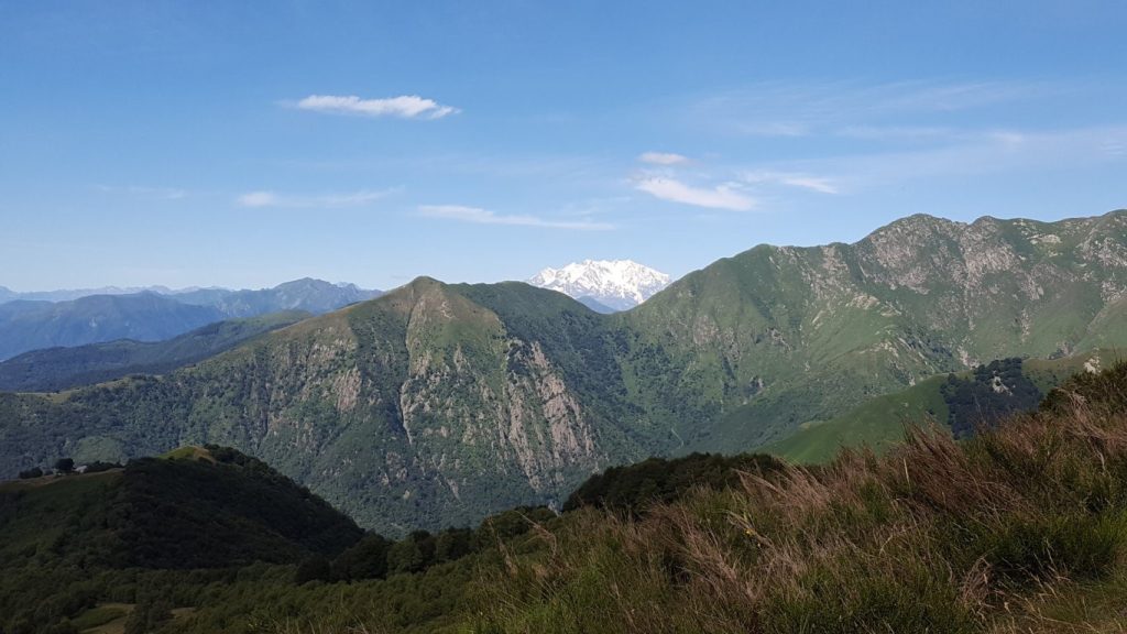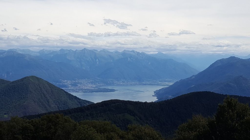 La rilassante passeggiata in discesa è proprio degna di un flaneur per la vista che ad ogni tornante ci viene riservata verso il lago, il varesotto col suo Campo dei Fiori, la pianura padana nonché l’affilata cresta che unisce le cime gemelle del Pizzo Marona e del Monte Zeda. In meno di un’ora e col cuore pregno di bellezza, ci ritroviamo a Colle di fronte al cancello della casa dalle persiane rosse.