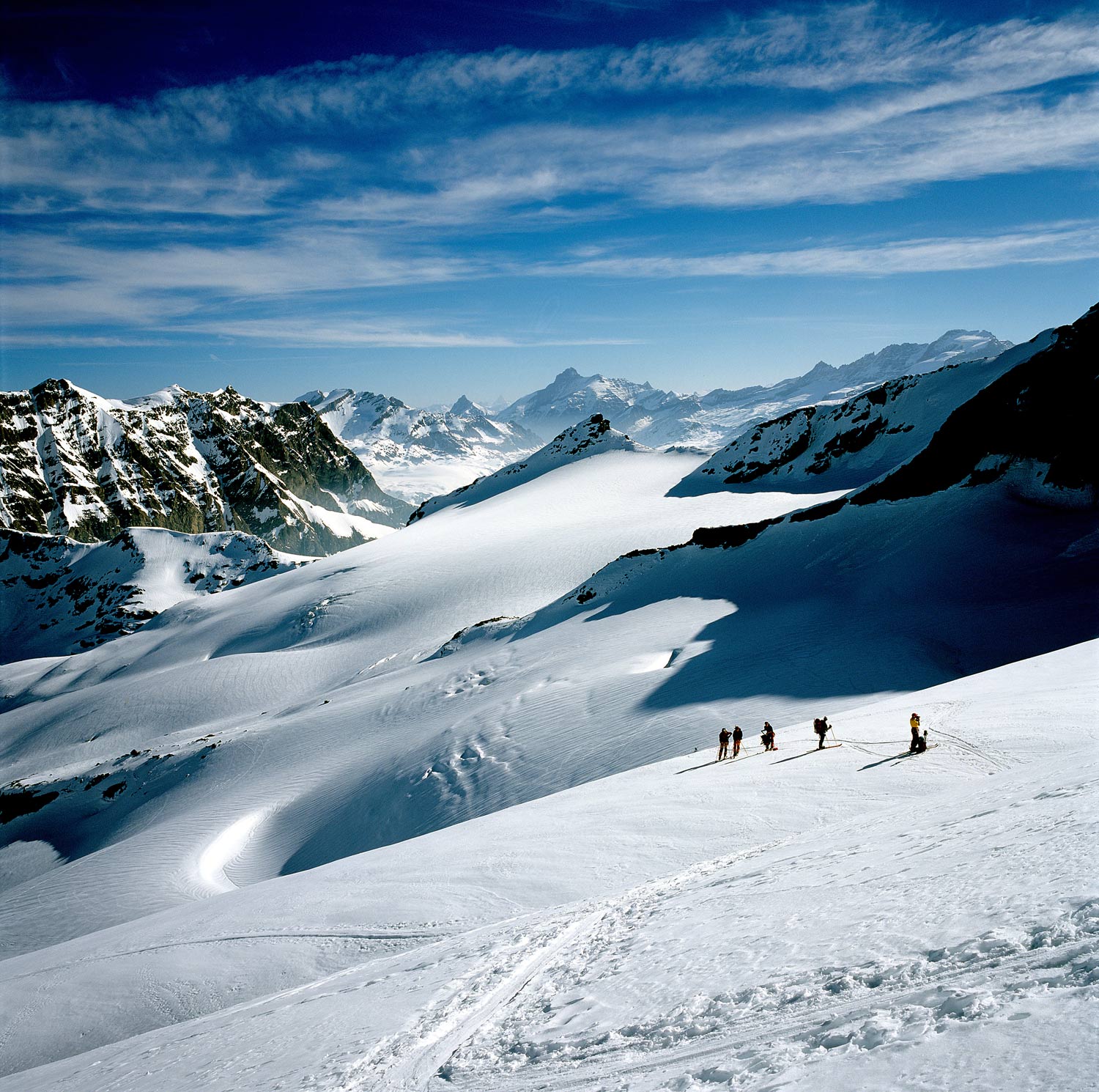 Nella notte ci alziamo presto e vediamo che il cielo è di nuovo coperto. “C’est la lombarde” asserisce Benoît. Ma sappiamo che le previsioni sono buone, perciò partiamo ugualmente sui ripidi pendii che portano al Lac de Chasseforêt. Nebbia, disagio e venticello umido di lombarde ci accompagnano fino al primo chiarore di un’alba che invece si rivela di speranza. Il sole squarcia di prepotenza la nuvolaglia e di colpo la giornata diventa radiosa. Dopo le salite al Col Ouest du Pelve e al Col du Dard, sulle piatte distese di neve del Glacier de la Vanoise per la prima volta sento che forse ce la faremo. Sembra di essere in Groenlandia, sull’ice-cap. Raggiungiamo la Pointe du Dard e quindi per una discesa entusiasmante ci buttiamo sul refuge de la Vanoise, dove le marmotte vengono a mangiarti in mano. Il sole è abbacinante in questo pomeriggio di festa. Tanti stanno scendendo giù dalla via normale della Grande Casse: mi sembra un po’ tardi per avere neve decente e non pericolosa…