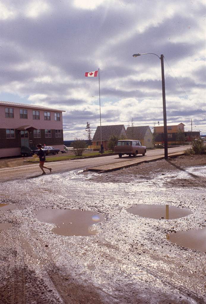 A prima vista non si capisce perché si ostinino a voler ingrandire Inuvik, Aklavik e Normann Wells. Niente colture, niente commercio. Ma il programma canadese di sviluppo si prepara a sfruttare le immense possibilità del territorio. Tra dieci anni le foto che ora stiamo scattando potranno essere parte di un loro album di ricordi, non rispecchieranno più niente perché tutto sarà cambiato; saranno un documento storico. E’ bello assistere alla loro crescita furiosa. C’è un clima da epoca di cercatori d’oro. Si organizzano per poter vivere e favorire la crescita del Nord-ovest, con la differenza rispetto al Far West che qui non si cerca solo l’oro e in più ci pensa il Governo. Ma anche aziende private e imprese colossali non perdono tempo e inviano squadre di geologi e di ingegneri. Non si vive più di pesca ormai: solo qualche esquimese pratica questa attività e solo per hobby, mentre ancora una vecchia ballata popolare canta: andando verso il Nord ti espanderai e sulla barca che rolla remando ti scalderai.