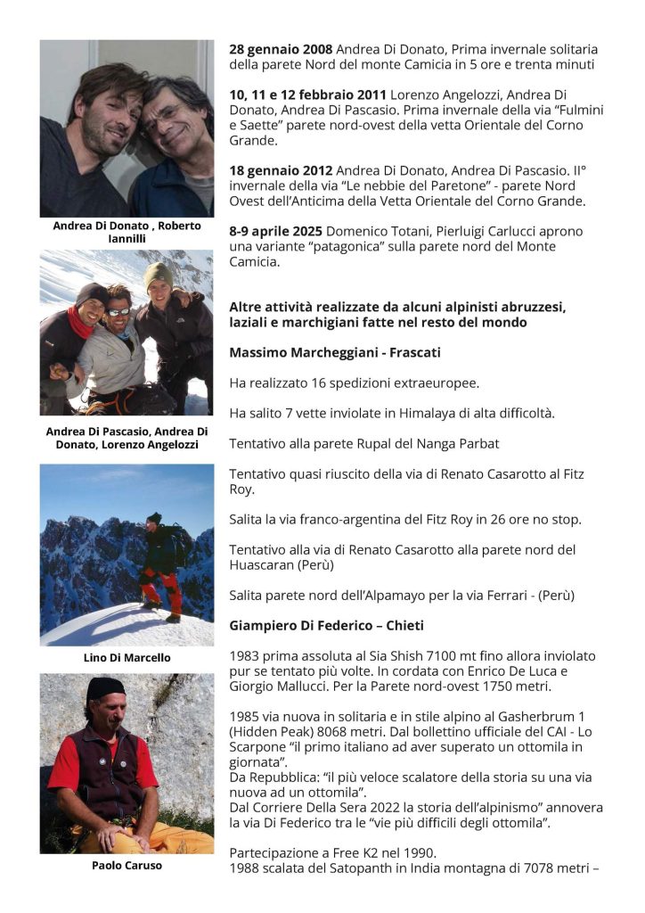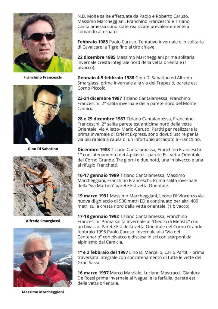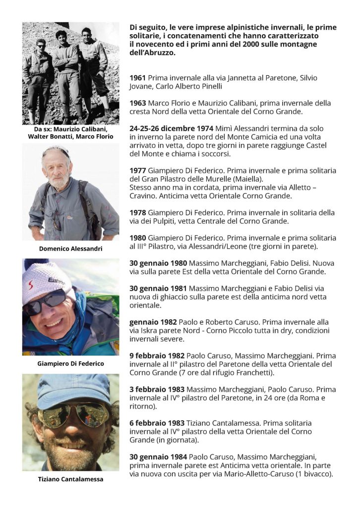 Tutto questo è per ricordare che molti alpinisti abruzzesi, laziali e marchigiani hanno scritto pagine di storia indelebili sulle montagne abruzzesi e non solo, senza clamori e sensazionalistici articoli sui giornali.
